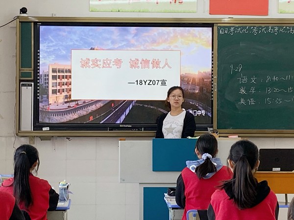 各班针对历次考试中出现的情况,深入解读考试的意义,重申学校考风考纪,列举常见作弊行为,提出诚实应考的价值。各班主任通过真实案例分析考试作弊的不良后果,强调诚实考试的重要性。同时,班主任还在应试技巧方面对即将开考的第一次教学质量检测进行考前辅导,并具体细化到心理技巧、答题技巧、思维技巧、复查技巧。各班主任希望同学们树立信心,摒弃杂念,合理用时,认真答题,交上满意的答卷。