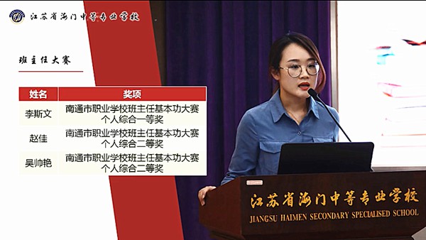 曾被评为海门市“优秀任课教师”“优秀班主任”“优秀教育工作者”“高考功勋教师”,南通市“优秀班主任”;获得南通市班主任基本功大赛获一等奖, 南通市班会课比赛获一等奖,海门市班主任基本功大赛一等奖,海门市人民政府嘉奖、记功,江苏省教学大赛三等奖,江苏省技能大赛三等奖等;作为班主任,热爱、尊重学生,关心学生的全面成长,所带班级多次获评“优秀班集体”、“先进团支部”,并获评海门市“五四红旗”团支部,指导学生参加江苏省创业大赛获优胜奖、南通市文明风采大赛获二等奖等;作为教研组长,认真履行岗位职责,教研组多次获评“优秀教研组”;主持校级课题研究,并在省级刊物发表多篇论文。