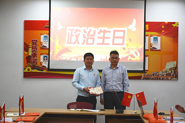 第三个议程:政治生日。周桂岐同志向周晟同志颁发生日贺卡,本议程通过人性化、亲情化的“政治生日”活动,有助于广大党员时时提醒自己,不忘初心,不忘根本,进一步增强全体党员的归属感、荣誉感和责任感。