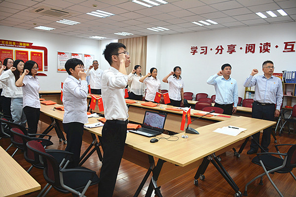 第五个议程:党建“每月一事”。为进一步加强师德师风建设,强化教师文明从教,廉洁从教,规范从教的职业意识,坚守师德,不忘初心。陈忠平同志带领全体党员,举起右手庄严宣誓,一份承诺,一份责任;一份宣誓,一份使命。全体党员将继续坚守师德不忘初心,用对教育事业的满腔热爱,信守师德规范,履行师德承诺,以自己的实际行动维护教师的良好社会形象,为办人民满意的学校作出自己的贡献。