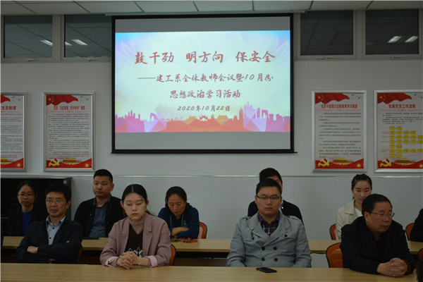 开学一个多月来,建工系工作平稳有序,为总结经验,更好地开展下阶段工作。10月22日上午9点15分,在B2楼214会议室,建工系组织召开了全体教师会议暨10月思想政治学习活动,系部全体教师参加了会议。
