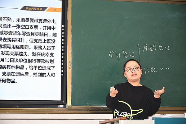本次公开课的教学内容为《会计凭证的审计》。课堂上,郁老师通过回顾旧知、讲授新课、课堂讨论、实操演练四个环节贯穿整节课,主要讲授了原始凭证与记账凭证的错弊以及审计方法,通过生活中的常见事物进行引导,使知识通俗易懂,学生更容易接受。整堂课程多媒体课件内容充实,教师与学生形成良好互动,课堂气氛活跃。
