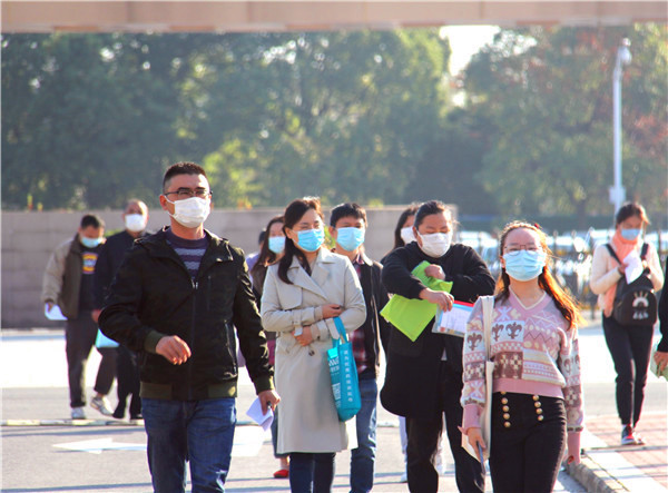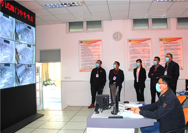 10月24日清晨,海门中专东校门,“卫生防疫组”几位同志有序组织考生测温、出示苏康码,检查口罩佩戴情况,非常时期的“国考”组织工作忙而不乱。 10月24日上午,海门区教育体育局副局长黄颖泉等深入海门中专对学校成人高考考场进行巡视,招办蹲点负责人、党委书记宋健、分管校长茅一娟等陪同。期间,巡查员、监考员各就各位履行职责,各考场秩序井然。黄颖泉对学校的考点组织工作非常满意,对考试环境布置的人性化、监控室条件的现代化、各项考务工作的规范化给予了高度评价。 海门中专是本次全国成人高校招生统一考试海门唯一的一个考点。今年海门中专考点参加成考统一考试的考生共1429人,55个试场,合并后为50个试场。其中专升本638人,8个科类27个试场,合并后为23个试场;高起专791人,3个科类28个试场,合并后为27个试场。海门中专富有承担大型考试组织工作的经验,承担成人高考考点任务已有很多年,但学校对考试组织工作重视程度丝毫不减,周密部署,精心安排,成立了以校长徐忠为考点主任,校长室其他成员及卫健委施华科长为考点副主任,下设8个工作组,各司其职,确保各项工作落到实处。 10月20日下午,教学科研部牵头召开成人高考协调会,相关部门负责人参加会议,研究部署今年成人高校考点相关工作,为广大考生提供公平、公正、放心、满意的考试环境。10月23日下午,又组织召开成人高考考务培训会,全体监考教师、考务组、巡查验收组成员参加会议。分管校长茅一娟作考务工作培训,增强全体考务人员的政治意识、责任意识、安全意识和自律意识,特别对今年疫情常态化环境下的考务工作提出了新要求;招办主任陆幸从“严格程序,抓细节”“严格要求,抓考务”“严明师德,抓考纪”三个方面重申了几个关键。 10月25日11:30,海门中专此次成考组织工作顺利完成,整个考试期间考场秩序井然,各项工作有条不紊,再一次实现了“零事故”目标,学校以严格的管理和优质的服务,圆满完成了任务,做到了领导满意、社会满意、考生满意。