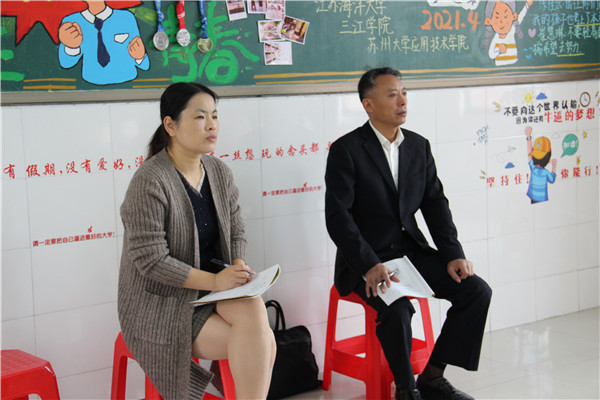 ——海门区职业学校2020—2021学年度对口单招第三次髙研会在我校召开 10月26日上午,海门区职业学校2021届对口单招第三次高考研讨会在我校召开,会议分两个阶段。 8点25分,高三课堂调研。海门区教育体育局党组成员、教师研修中心主任朱国兴、职社科科长顾靖锋、副科长马建国、副主任唐庆军、职教教研员施晓东一行五人在教学科研部主任杨一丹、系部主任等陪同下,深入高三课堂进行课堂教学调研。 9点20分,高三复习研讨。校长徐忠、党委书记宋健以及对口单招两系部主任、2021届对口单招班全体班主任、高三各备课组长等和高三课堂调研人员济济一堂,会议由顾靖锋科长主持。 会上,杨一丹主任首先对南通市六校联考组织情况作了介绍说明。随后她从考试本科模拟情况、优生分布、全校文化课情况、各专业均分与名次比较、匹配人数等方面对南通市六校联考考试质量作了深刻剖析,指出了不同学科、不同专业、不同班级存在的优势与劣势,明确了后阶段努力的方向。 财贸系会计学科备课组长杨军花、电信系数学学科备课组长冯霞两位老师对各自学科作了诊断分析,阐述了高考备考复习策略。财贸系王飞主任从咬住一个目标,强化两支队伍,落实三个分层,紧盯四个方向,抓好五个关键四个方面谈了今后的复习工作。电信系江勇主任围绕在自省中当自立,在困境中求突围,在艰难中求进步三句话分享了后阶段复习策略。 职教教研员施晓东主任要求全体高三师生知晓联考的时间与复习安排,根据联考反映的问题提出明确学情,降低难度;发挥优势,全面开花;保长补短,发挥潜力的复习备考建议。 副校长茅一娟从加强研究,细化管理,深入课堂,留白消化,分层提优,强化反馈,关注转化,互动反思,营造氛围,大力表彰十个方面对后阶段教学提出了建议。 顾靖锋科长解读《海门区2020-2021学年度职业学校教育质量评价方案》,明确了2021年高考指标,要求2021届全体任课教师树立信心,向更高目标努力;明确目标,分层做好全体学生动员;把握节奏,做好以学生为本的教育教学工作。 徐忠校长针对本次考试呈现出的良好态势,用三个字寄语全体单招人:一是懂,要懂学生,懂方法,懂考纲,懂自己;二是真,要真功夫,真到位,真训练,真模拟;三是高,要高投入,高效率,高纠错,高匹配;在看到优势,分析劣势的基础上用信心、决心争取更大的成绩。 最后,朱国兴主任从三个方面做总结发言。一是认清形势,形成共识,进一步增强责任意识,挑战无极限;二是突出重点,全面科学抓好备考各个环节;三是系部、班主任、学科组、教师在守好责任田的基础上要加强协作,力求效率最大化。 本次高考研讨会既是一次安排部署高考备考工作的动员会,也是一次凝心聚力、砥砺前行的推进会,全体高三教师将牢记使命,不忘来路,继续前行,以更加昂扬的斗志、更加饱满的激情,夺取2021年对口高考的新胜利。