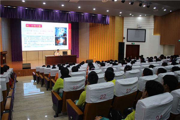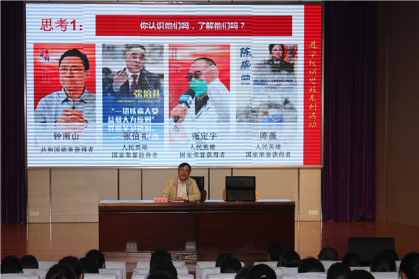 为深入贯彻落实习近平总书记在学校思想政治理论课教师座谈会上的重要讲话精神和贯彻落实中共中央办公厅、国务院办公厅《关于深化新时代学校思想政治理论课改革创新的若干意见》,切实提升学校思想政治理论课实施水平,10月29日上午9时,南通市海门区教育体育局党组成员、中小学教师研修中心主任朱国兴在海门中专文苑报告厅为2017、2018、2020级部分学生开设了一堂《从“战疫”谈当代中国青年的责任与担当》的思政课。 朱国兴先从三段视频入手,介绍钟南山、张伯礼、张定宇、陈薇的英雄事迹,由此迁移到学生感兴趣的话题“你心中的英雄或者偶像是谁”,让学生在潜移默化中树立榜样意识,向榜样看齐、向先锋看齐,追求更加美好的人生。接着进行第二部分内容:“在战疫大考中认识中国”,朱国兴向全体同学展示了在疫情中发生的感人场景,又将中国抗疫现状与美国抗疫现状进行了对比,学生通过对比自然得出了“社会主义制度有着无可比拟的优越性”的结论,在观察和比较中,激发学生对祖国和对人民的崇敬和热爱之情。课堂最后,朱国兴抛出问题:这次疫情防控对于我们同学又有怎样的启示和意义呢?在场学生积极参与互动,有的说要通过好好学习报效祖国;有的说要关心国家大事;还有的说要积极参与社会公益事业。大家讨论热烈、热血沸腾。最后,朱国兴通过“胸有大志、心有大我、肩有大任、行有大德”四条主线寄语学生,希望全体学生用自己的实际行动谱写大写的青春、答好时代答卷。 课后,学生们纷纷表示,本节思政课立意高远、内容丰富,让全体同学振奋了精神、提升了境界、坚定了信念。局党组领导亲自为学生上思政课充分体现了区教体局和学校领导对学生思想政治教育的重视。我们坚信,在中国共产党领导下的祖国会愈加繁荣昌盛!