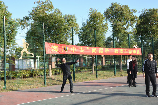 秋高气爽,海门中专第十四届“尚德杯”教职工排球赛火热开赛。本次比赛采用男女混合组队形式参赛,每队每场最少派两名女教师上场,比赛采用3局2胜赛制。