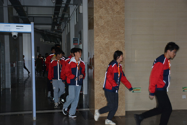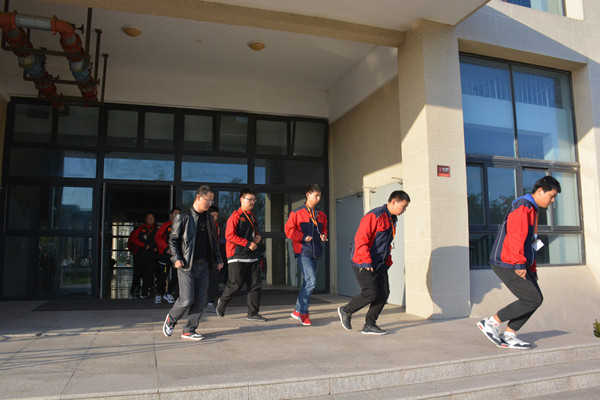 当紧急疏散的警报声再次响起时,老师们立即指挥学生打开教室的前后门,按照事先制定的方案快速有效地从教室跑出。其他教师也立即到就近的教室和楼道口指导学生疏散,防止发生拥挤和踩踏等事故。全体学生到达指定安全区域后,各班主任清点本班人数,向系部报告。