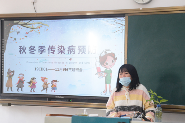 秋冬季节是传染性疾病的高发季节,为确保学生的身体健康,增强全体学生预防传染病意识,有效防止秋冬季传染病的发生,11月9日上午第一课,信息系各班开展了“秋冬季传染病预防”主题班会活动。