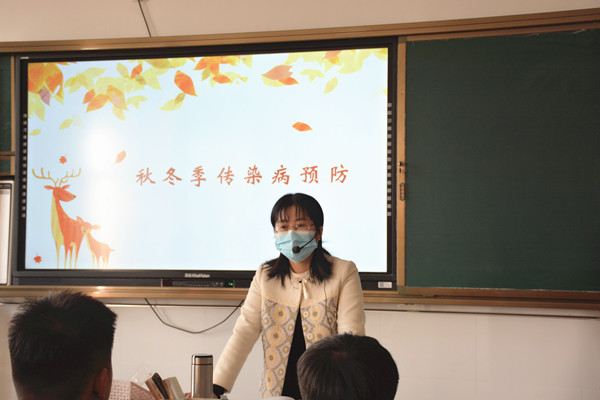 班会课上,各班班主任利用PPT创设情景,与学生互动交流,就常见传染病的特征、预防和控制等方面对同学们做了详细的讲解,着重介绍了肺结核、流行性感冒、水痘等常见传染病的症状、危害及如何预防等知识。还特别要求学生们每天开窗通风,保持室内空气新鲜;在日常生活中注意个人卫生,养成良好的饮食习惯,保持环境清洁,根据天气变化及时增减衣服,加强体育锻炼,增强身体素质等。