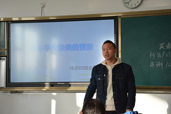 为切实加强学校冬季传染病防治工作,增强全体学生预防传染病意识,同时培养同学们良好的个人卫生习惯,创建良好的校园卫生环境,11月9日上午,机电系各班组织开展了以“秋冬季传染病预防”为主题的班会活动。