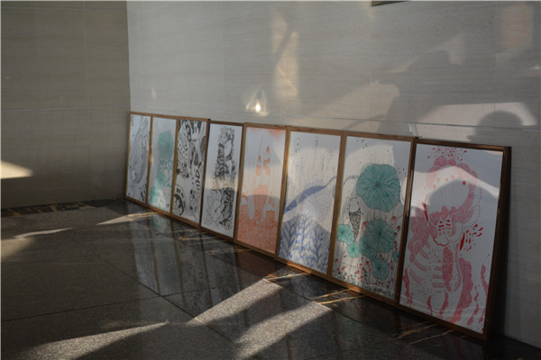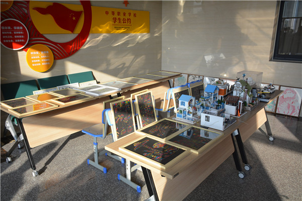 为了将学生精彩的作品展示给全校师生观看,邹熊冰副主任和沈珺珺、吴佳等社团指导老师在B2楼东大厅提前布置好展台。
