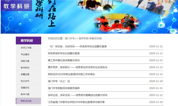 为贯彻落实《国务院关于加快发展现代职业教育的决定》,深化国家、省教育工作会议精神,大力宣传我校职业教育改革发展成果,宣传高素质劳动者和技术技能人才的先进事迹和重要贡献,引导社会各界积极支持职业教育,营造人人皆可成才、人人尽展其才的良好环境,根据市教育局办公室《关于转发省教育厅等十部门〈关于做好2020年职业教育活动周相关工作的通知〉的通知》,我校决定于11月8日至14日开展2020年职业教育活动周活动。 为落实好南通市教育局的相关要求,让本次职教活动周真正起到展现职业教育魅力,推动职业教育发展,增强社会各界对职业教育关注的作用,我校制定了详细的活动方案。学校各院系、部门,明确分工,细化任务,推出内容丰富,品质优异,最能代表职业教育发展成果的活动。 为了疫情防控,本次职教活动周与往年做了较大调整,最大的特色就是将部分活动搬到了“云”上。我们开设了“云上活动周”宣传专栏,面向学生、家长和社会展示办学成果、校园文化、优秀师生等,讲好职教故事,唱响职教声音。学校的开放日活动也由现场搬到了线上,各系部将以职业体验图文、视频等展示专业特色,做好招生宣传。同时学校还会开展社会服务、社团展示、教师技能大练兵、优秀毕业生报告会、产教融合展示等一系列活动,将最好的职教形象展现在公众面前。 校园里的电子大屏,道路两旁飘扬的彩旗,营造了本次职教活动周的浓郁氛围。如果你想更多地了解本次活动,可以通过学校的网站、官微、自媒体等渠道获取详情。精彩不容错过,职教明天更好!(贺敏华)