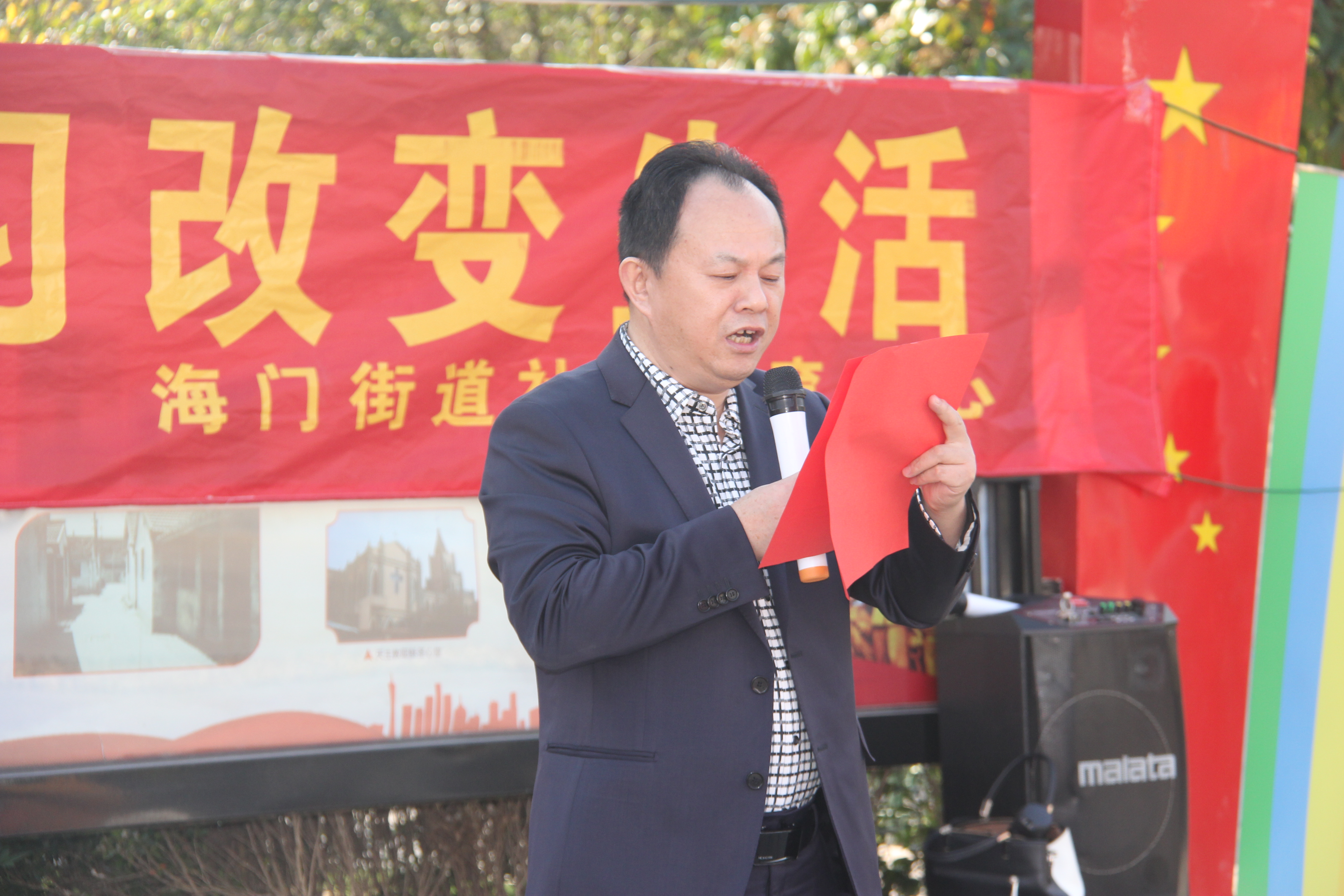 海门街道社区教育中心负责人朱卫国向全体社区居民发出读书活动的倡议。他大力倡导全体居民积极投身读书活动,弘扬社会公德、职业道德、家庭美德、个人品德等道德风尚,努力提升整体素质。