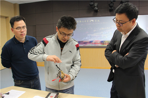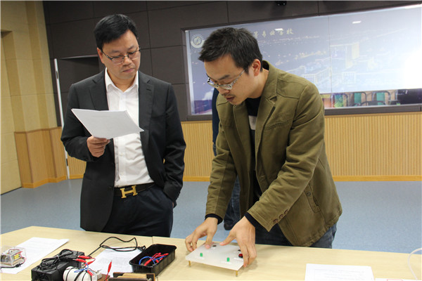 11月11日下午2点,2020年海门区自制教具海门中专评选活动在我校A楼1008教室顺利举办。教体局职教科科长顾靖峰、副科长马建国、教研室主任施晓东、海门中专副校长王小辉参与评审。 本次评比活动依据海门区教体局《关于开展海门区第十五届“弘謇杯”教师技能大赛之自制教具评选活动的通知》文件精神,各系部通过广泛动员,认真组织,充分调动了广大教师参与自制教具的热情。老师们结合课程标准以及学生认知规律,充分挖掘自己的聪明才智,就地取材,设计制作出了很多极富特色的教具,无论是构思、选材、还是制作方法,都体现了老师们的智慧、用心以及源源不断的创新意识。 在现场教具展评活动中,选手们结合自己的作品,进行了详细的讲解与创意演示。专家们依照省教育厅文件精神,从教育性、创新性、实用性、科学性、启发性、安全性等六个方面对参评作品进行了认真细致的评审。 接下来,选手们将根据评审专家的意见对作品再作修改后,参加省市展评活动。
