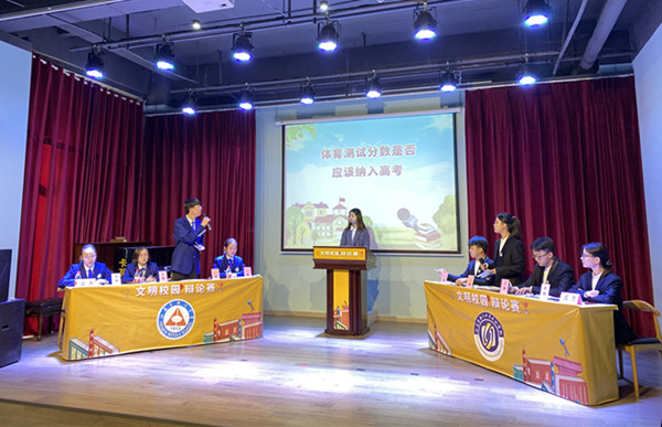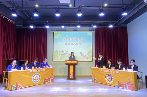 11月14日下午,海门中专和海门中学在辩论赛场如期而遇。辩论双方围绕“体育测试分数是否应该纳入高考”辩题展开激烈地辩论,在经过五个环节的辩论后,海门中专辩论团队以出色的表现赢得比赛。 海门中专辩论团队是反方,观点是“体育测试分数不应该纳入高考”,我方四个辩手依然保持良好默契,一辩立论动之以情晓之以理,二辩三辩在自由辩论环节锋芒毕露,旁征博引,有理有据,驳斥对方的观点的同时有力地证明我方观点,四辩总结陈词思维缜密,沉稳大气。 赛后,评委进行了现场点评,称这是一场势均力敌的比赛,双方选手都表现出了现代青年学生对社会现实的关注。我校辩论团队的自信和乐观尤其值得称赞! 自此,海门中专的辩论团队顺利进入四强,期待他们在半决赛的精彩表现!(供稿:学生工作部 黄 娟)
