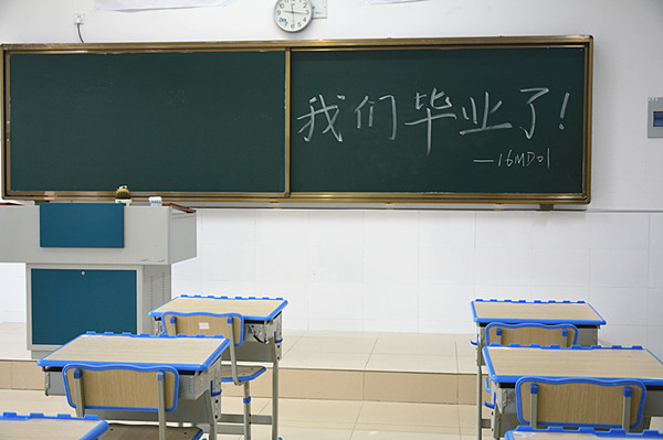 曾经书声朗朗的教室空空、曾经满是文字的黑板空空、曾经欢声笑语的座位空空;教室外的集体照,你们紧紧挨着,笑容依旧,笑声似乎还在;走过这,想起这,老师们的心正惦记着你们、遥望着你们、远送着你们、祝福着你们!