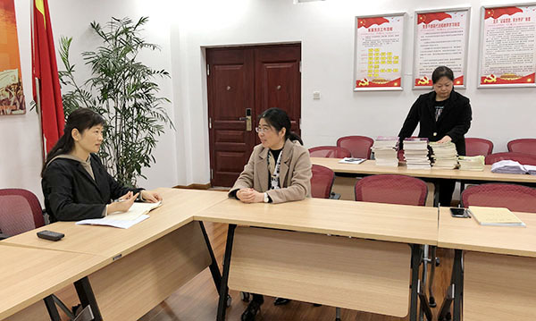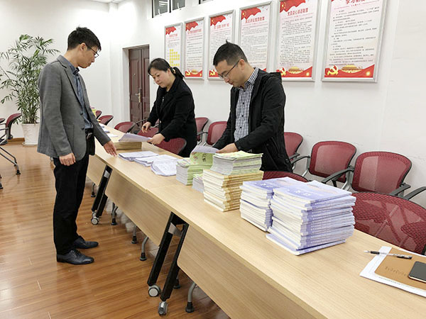 检查组一行仔细检查了系办准备的教育教学常规材料,包括教师教学进度、备课笔记、听课笔记、教研组活动情况、期中考试试卷批阅和学生作业批改记录等,同时与经贸系副主任陈忠平进行了沟通交流,反馈了检查中发现的常规工作中的优点及不足,并提出了相应的改进措施。