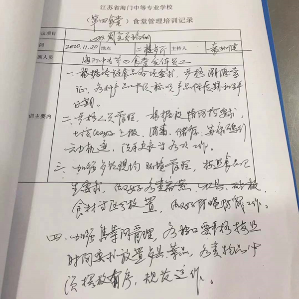 为全面加强食堂规范管理,提升全体食堂从业人员安全意识,更好地为全校师生“舌尖上的安全”保驾护航,11月20日下午全校五大食堂、茶餐厅和超市开展了“严守食品安全”为主题的培训活动。后勤服务中心施锡斌、杨柳和餐饮管理处刘永斌到场进行督查。 培训会上各餐厅负责人根据全校教职工大会上提出的食品安全总体要求,结合后勤服务中心的培训内容,全面通报近期膳食管理委员会的每周考评和后勤服务中心、餐饮管理处的每天检查情况中不到位之处;针对下阶段的具体工作,要求全体员工一是牢记疫情防控的常态化规定,规范做好口罩佩戴、每天2次测温、周日进校前苏康码上报制等具体措施;二是严格控制冷链食品采购,切实做到不采购进口食材、冰箱内食材生产日期保质期符合要求、冷冻食品烧熟烧透;三是加强现场环境整治,做到蔬菜荤菜容器区分、刀具砧板生熟区分、生熟食材区分放置、增设防蝇防鼠措施。 最后进行了七步洗手法的专项培训。并进行全面大扫除。 民以食为天,食以安为先。相信通过本次培训会议,进一步建立学校食堂安全管理长效机制,扎实做好学校食堂食品安全工作起到积极的作用。