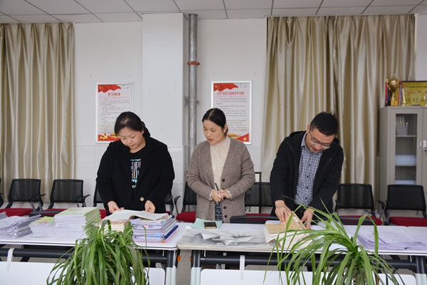此次检查内容主要包括教学进度自查记录、听课笔记、教研活动记录、教案及学生作业情况、泛雅平台建设和课程建设情况等。王飞主任首先汇报了财贸系教学常规系部自查情况。在自查过程中发现,财贸系教师教案设计目标明确,重难点突出,教学环节清晰,备课节数足。系部日常教学整体上处于平稳有序状态。随后,检查组对老师们上交的各类教学资料进行仔细翻阅抽检,并结合常规要求给予点评。最后,茅校长对此次检查情况进行总结性评价,肯定了财贸系现阶段取得的一系列成绩,同时还特别强调要求继续加强对高三年级教学的督查,切实提高课堂教学效率,提升高三复习针对性和有效性。