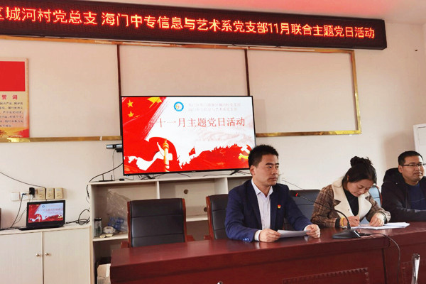 11月23日下午13:40,海门中专信息与艺术系支部书记徐亮带领信息系支部全体党员走进海门港新区城河村,与城河村党总支联合开展“立足新起点,接力奋斗新征程”主题党日活动。活动由城河村驻村第一书记俞国权主持,城河村党总支书记冯菊英、信息系支部全体党员、城河村在家老党员参加此次活动,主要有五项议程。