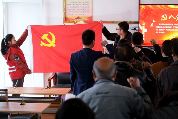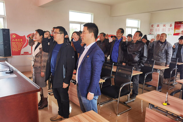第二项议程,重温入党誓词。海门中专和城河村党员同志起立,紧握右拳,在冯菊英书记带领下,重温入党誓词,在铮铮誓言中坚定入党信念。