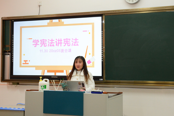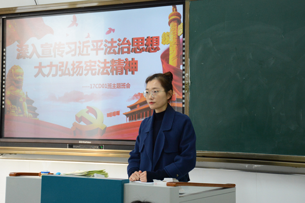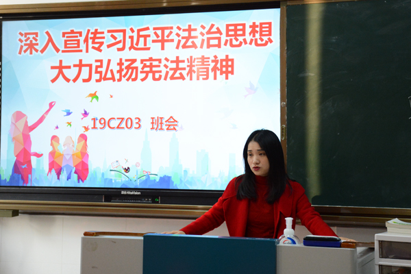 为学习贯彻十九届五中全会精神,认真落实习近平总书记法治思想,特别是关于宪法的重要论述,引导学生知法、懂法、守法,成为社会主义社会合格公民。信息系于11月30日上午第一课开展“深入宣传习近平法治思想,大力弘扬宪法精神”主题班会活动。