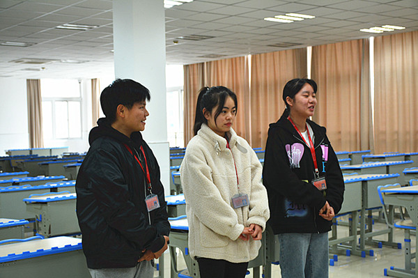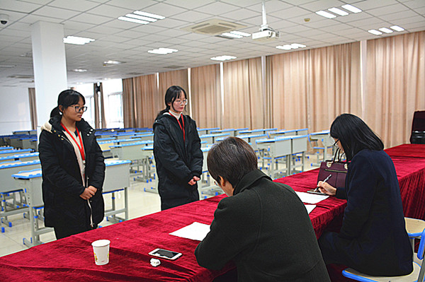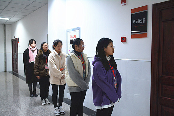 学生们在思想上高度重视此次面试,从制作精美的简历、穿着得体的服装到面试的注意事项都进行了精心的准备。学生们信心满满的在209室外排队,等待中国农业银行海门支行综合部领导的面试挑选。