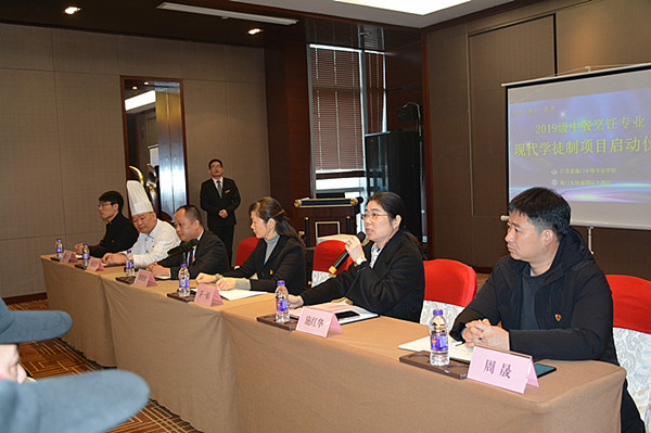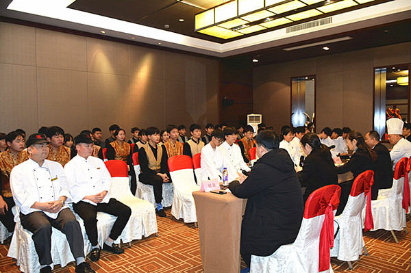 为了让更多烹饪专业的学生拥有在五星级酒店工作的实践机会,12月4日上午9:30,经贸系19级中餐烹饪专业学生“现代学徒制”启动仪式在东恒盛大酒店会议室举行。参加本次启动仪式的有副校长茅一娟,经贸系主任施红华、副主任陈忠平、周晟,酒店人力资源部经理陈焕智、师傅代表和19级全体烹饪专业学生。施红华主持启动仪式。