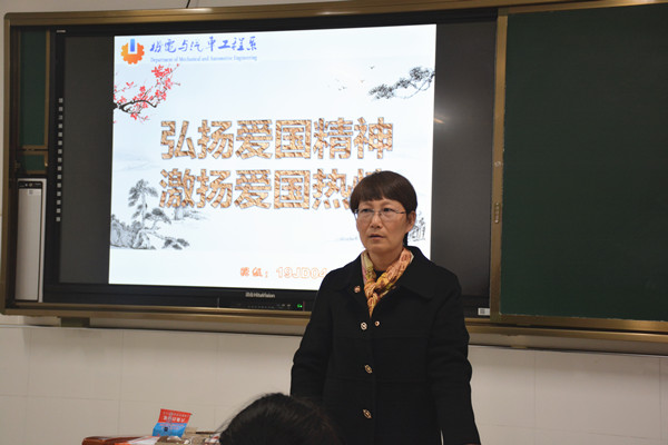 爱国主义是中华民族的优良传统和民族精神的核心内容,构成了中华民族几千年来生生不息的发展动力。为加强学生们的爱国主义教育,12月7日上午,机电系组织开展了以“弘扬爱国精神 激扬爱国热情”为主题的班会活动。