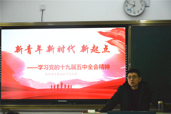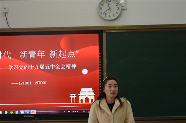 12月14日上午第一课,根据学工处要求,建工系组织各班开展了“‘新青年新时代新起点’---学习党的十九届五中全会精神”主题班会活动。