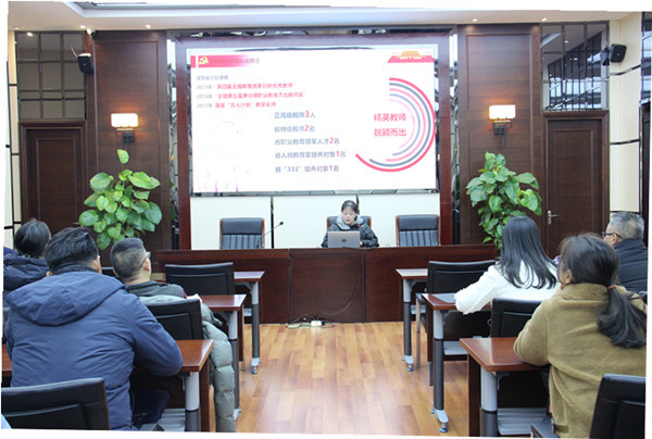 12月14日下午1点30分,海门区2020年教育体育系统党建创新融合工作现场推进会在我校举行。教学科研部主任杨一丹作了题为《红心烛照,党建融合师资队伍建设》的工作汇报,对我校“党建+师资队伍”品牌进行了介绍。 会上,杨一丹从四个方面详细介绍了我校“党建+师资队伍”的整体情况:一是把强化党建政治引领摆在教师队伍建设突出位置,二是将师德师风作为教师队伍素质评价的第一标准,三是找准教师队伍建设突破口和着力点,四是扎实开展党建融合师资队伍建设的探索和实践。具体行动表现为:启动“初心”领航行动,把好政治方向关;组织“匠心”提升行动,把好技能业务关;开展“仁心”涵养行动,把好师德师风关;推进“靶心”瞄准行动,把好改革发展关。最后她谈到了我校“党建+师资队伍”的创新举措:“两栖发展”,构建双师优质发展平台;双能提升”,拓宽教师多维成长空间;“双全培育”,创新师资动态管理途径。 我校一贯重视“党建+师资队伍”建设,充分发挥党委的战斗堡垒作用,解决师生思想阀门的“总开关”,提供学校前进的“动力源”,真正实现以党建工作的领先,推动学校各项工作的率先,为经济转型和高质量发展提供源源不断的人才红利,为促进地方经济高质量发展贡献职教人的一份力量。