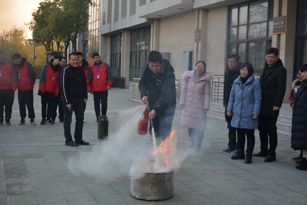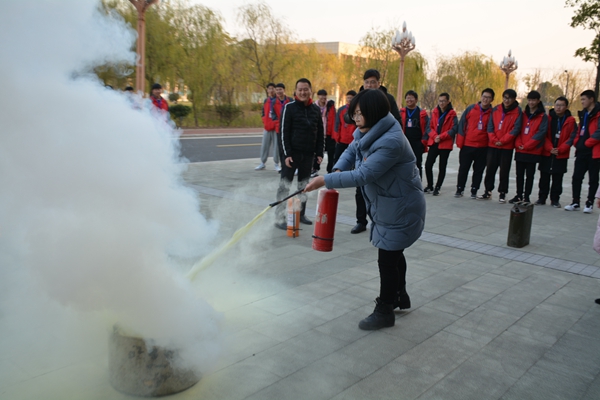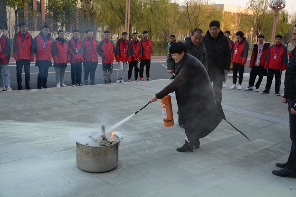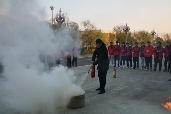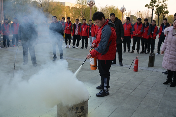 第四个议程是X动作——消防灭火安全演练。党员教师代表和学生代表面对模拟火场,按照灭火方法和步骤,拔掉灭火器安全栓,一手拿捏着压把,一手提着灭火器喷嘴,对着烈火根部均匀喷洒,亲身体验了使用灭火器灭火的感受。通过开展此次消防灭火演练,师生们了解了火灾发生时的应对措施,掌握了灭火器的操作使用方法和有效灭火方法,增强了师生的消防安全意识与自护自救能力。