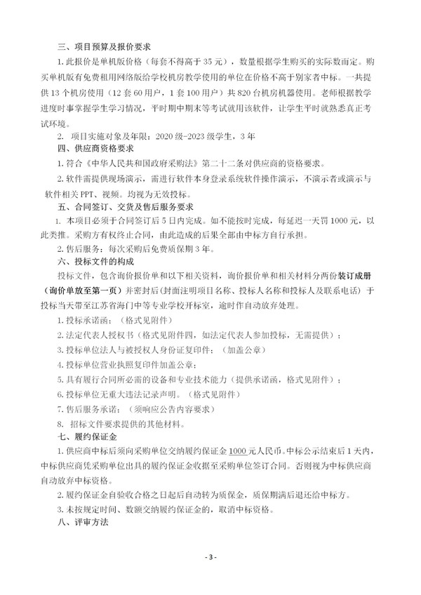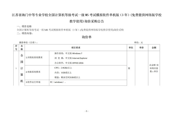 江苏省海门中等专业学校全国计算机等级考试一级MS考试模拟软件单机版(3年)(免费提供网络版学校教学使用)询价采购公告