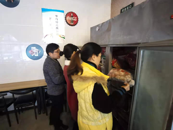 为切实做好学校疫情防控和食品安全工作,有效预防校园突发公共卫生事件的发生,进一步提高我校食堂服务质量和管理水平,确保学期末师生的饮食安全。 12月23日上午,由校党委副书记、副校长周桂岐,带领后勤服务中心及膳食管理委员会全体成员对学校食堂进行突击检查。检查组人员认真查看了各食堂的个人卫生、前后堂环境卫生、食品原材料及检验检疫合格证、“三无”产品、饭菜留样记录等,特别对储藏食品、调味品保质期作了严格筛查,对“防尘防蝇”等容易忽视的细小环节也一一巡查到位,对检查中发现的问题,要求食堂负责人及时进行整改。 全校师生的饮食安全是学校安全工作的重中之重,更是学校健康、有序发展的最大保障,此次突击检查,精心组织,严格落实,进一步增强了学校食堂经营者主体责任意识和法律意识,能有效遏制食品安全事故的发生,严格落实食品安全各项管理制度,从而全面提高学校食堂食品安全的整体水平。
