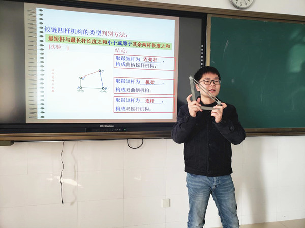 12月28日上午第二课,机电系仇凯翔老师在19JZ02数控技术应用班开设了一堂题为“铰链四杆机构——类型判定”的校级公开课。机械教研组组长陈炯以及顾卫东、谢丹、倪慧娟、蔡红艳、朱哲贤、邱春燕等多位老师参与了听课、评课活动。
