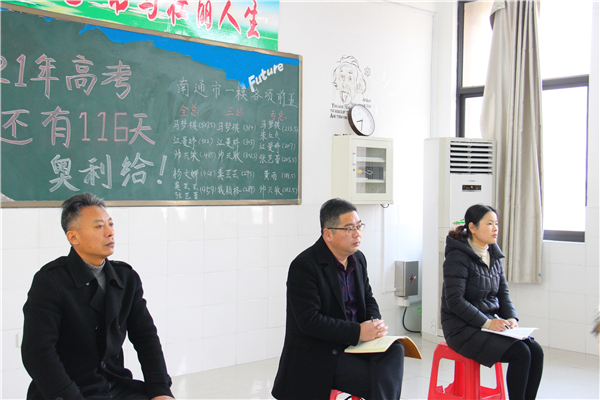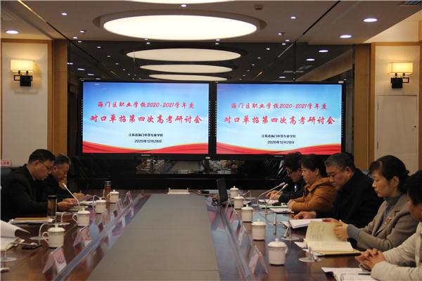 为精准分析2021届对口单招南通市一模考试成绩,研究部署下阶段高三复习教学安排,12月28日上午,海门区职业学校2021届对口单招第四次高考研讨会在我校召开,会议分两个阶段。 第一阶段,进行高三课堂调研。海门区教育体育局党组成员、教师研修中心主任朱国兴、职社科科长顾靖锋、副科长马建国、副主任唐庆军、职教教研员施晓东一行五人在副校长茅一娟、教学科研部主任杨一丹、系部主任等陪同下,深入高三课堂进行课堂教学调研。 第二阶段,进行高三复习研讨。党委书记宋健、对口单招系部主任室成员、2021届对口单招班全体班主任、高三年级各学科备课组长等和课堂调研人员齐聚一堂,会议由顾靖锋科长主持。 会上,杨一丹主任首先对南通市一模考试质量进行分析。她从考试总体情况、模拟上线、文化课分析、专业课分析、问题分析等方面作出深刻剖析。她指出,本次考试稳中有升,既要看到希望,也要看到危机,要做到步步为营,方能未来可期。 电信系计算机专业杨一民、财贸系市场营销专业吴慧娟两位老师对各自学科作了诊断分析,阐述了高考备考复习策略。 电信系主任江勇围绕处困境但不困惑的主题,从调整策略、边缘生转化、技能训练、氛围营造、落实管理五个方面谈了今后的复习工作。财贸系主任王飞围绕目标只为本科、突出两个层面、狠抓三项落实三个方面分享了后阶段复习策略。 职教教研员施晓东主任从2021年省、市对口单招报名情况分析了明年高考的形势。他要求大家二轮复习要注意四个“以”:以考纲为依据,以教材为核心,以学情为基础,以高考真题为范例。试卷讲评要注意做到及时性、目标性、针对性、主体性、延伸性五原则。 副校长茅一娟对我校本次一模向上、向好的态势给予了肯定。她指出,要想取得好的高考成绩,就必须要抢时间、压任务、实管理。随后她为后阶段教学提出三点建议:一是以专题为抓手,进行定点式“清障”,全面提高课堂效率;二是以时间为对手,坚持问题导向、标准引领,在限时训练中实现理论、技能“双突破”;三是视学生为水手,做到一课一清、一生一策、一事一议,在放手与锤炼中培养学生的抗压能力。 顾靖锋科长对《海门区2020-2021学年度职业学校教育质量评价方案》的调整作出了说明,要求大家做好各个层面的分析研究,在适当调整策略的基础上,抓好督促落实。 党委书记宋健用“发展态势喜人、竞争形势逼人、制约瓶颈折磨人”三句话概括了本次考试,要求单招教学务必做到四“精”四“必”:精准施策,在制约瓶颈上必须有大突破;精准帮扶,在潜力生转化上必须有实招数;精准选题,在模拟训练上必须有高效率;精准对接,在技能训练上必须有全保障。要与时间赛跑,向潜力生要量;与同伴携手,向课堂要质;与信息对称,向训练要分;与压力对抗,向精气神要绩。 最后,朱国兴主任从三个方面做总结发言。一是进一步认清形势,形成共识,切实增强责任感;二是突出重点,全面科学抓好备考各个环节;三是系部、班主任、学科组、教师在守好责任田的基础上要加强协作,力求效率最大化。 本次高考研讨会既是对前阶段教育教学质效的大盘点,也是为后阶段改进把脉、问诊与施策。全体高三教师必将再接再厉,全面认识自身的优势与存在问题,进一步明确所处的位置和努力目标,力争将海门中专对口单招这块金字招牌擦得更亮、更耀眼。