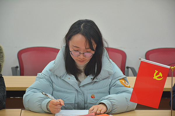 第四个议程:重温入党誓词“我志愿加入中国共产党,拥护党的纲领......”对每一位共产党员来说,从宣誓的那一天起,生命便被赋予了新的意义。重温入党誓词,正是要再一次提醒在场的每位同志不忘党员身份,不忘光荣使命、不负神圣职责。