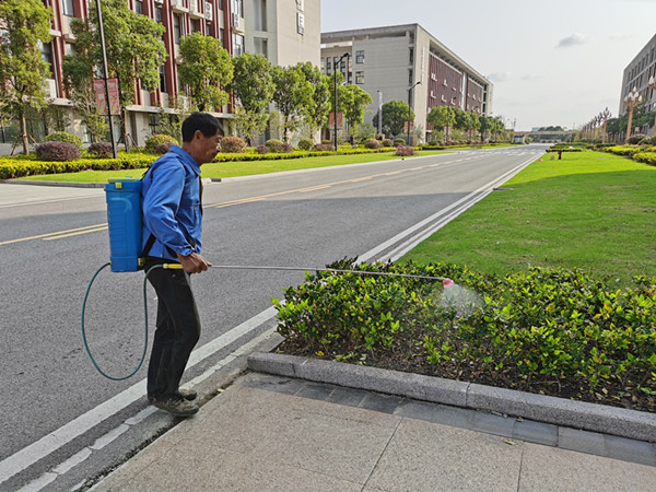 冬季的树木养护是绿化管理的一门必修课,为进一步做好我校绿化、美化工作,提高校园绿化水平,积极创建优美的育人环境,增强校园文化内涵,后勤保障部积极开展冬季校园绿化养护工作。 本着早谋划,早准备,早安排的原则,在寒冬来临以前,后勤保障部就多次组织绿化养护单位人员来校,将绿化工作重心转移到冬季绿化养护管理阶段。养护人员积极采取冬季施肥、树木涂白、整形修枝、防治病虫害等有效措施进行科学、精心养护,全力以赴确保校园树木植物能够安全顺利过冬,以期来年茁壮成长。 施冬肥不仅能够促进植物安全越冬,也为来年的生长打基础。绿化人员将乔木刷石灰水涂白,整齐划一,不仅杀死了藏在树皮内的越冬病虫,同时也防止树体的水分蒸发,从而达到保暖御寒的目的。学校的盆栽铁树穿上了防护服,早在十二月初,对校园所有高大的乔木进行了冬季枯枝修剪和有机肥培肥工作,保证树体生长势和营养供给。同时将公共区域部分绿植搬迁至校园温室集中保温管理。(供稿:后勤保障部)