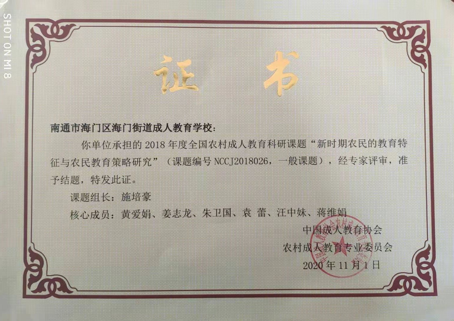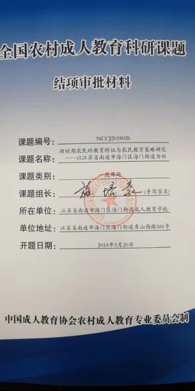 回顾课题研究的道路,虽然困难重重,但大家的收获也是很大的。在研究的过程中,课题组全体成员不断学习、不断探索、努力完善。以研促教,科研兴教。课题的顺利结题是终点也是起点。在科研的道路上,海门街道社区教育中心将继续努力,不断探索,勇于创新!供稿:海门街道社区教育中心 朱卫国