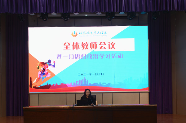 1月7日上午9:15,机电系在文苑楼报告厅召开全体教师会议暨一月思想政治学习活动,机电系主任吴樱樱主持会议。