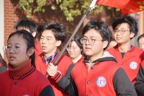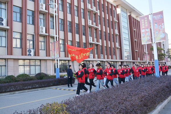 活动第一个阶段是集体跑操活动。各班学生统一身着红色“战袍”,形成方阵,在班旗的指引下,环绕北操场两圈,并喊出铮铮誓言,宣示内心冲刺高考的坚定信念和深沉力量。整齐的步伐,激越的口号,表达了财贸系2021届毕业班全体师生的必胜豪情。