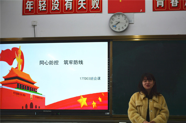 随着学期末的临近,防疫工作正在有条不紊的开展。为进一步做好疫情防控工作,全面贯彻落实江苏省教育厅、南通市教育局、海门区教体局和学校有关寒假前后疫情防控会议精神,全力做好学校疫情防控工作,确保期末工作平稳收官,1月18日上午,建工系组织各班开展了“同心防控筑牢防线”主题班会活动。