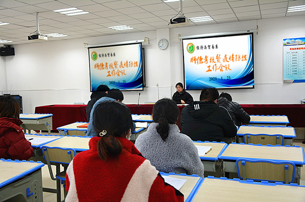 根据学校2020年度教职工师德考核方案,为全面贯彻学习党的十九大精神,坚持“立德树人”,争做“四有”好老师,1月25日下午3点,经贸系组织召开了2020年度师德考核暨疫情防控工作会议,校党委副书记、副校长周桂岐参加了会议,经贸系主任施红华主持会议。
