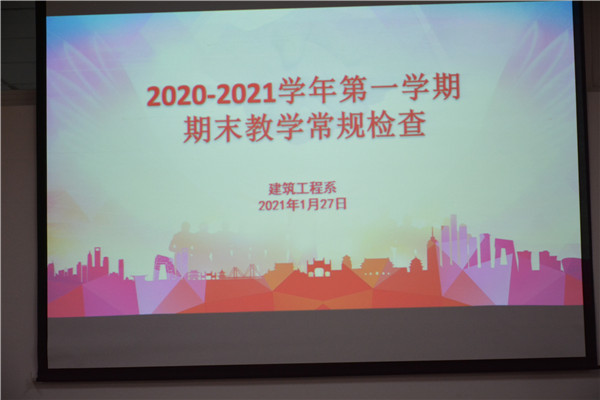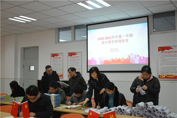 为了切实提高教育教学质量,督促全体教师认真做好各项教育教学工作,1月27日下午,在茅一娟副校长带领下,教学科研部主任杨一丹、副主任王茂、五位兄弟系部主任一起组成检查团对建筑工程系进行期末教学常规工作检查。
