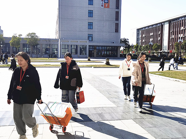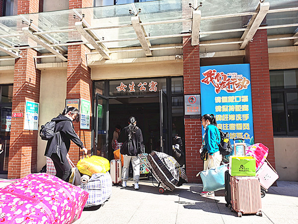 经贸学生们神采奕奕又期待满怀,这里一群,那里几个,怀着对新学期的美好憧憬,拖着满载梦想的行囊,迈向了崭新的学期。思念与亲切、追求与展望,全在青春的笑颜和欢快的脚步里。