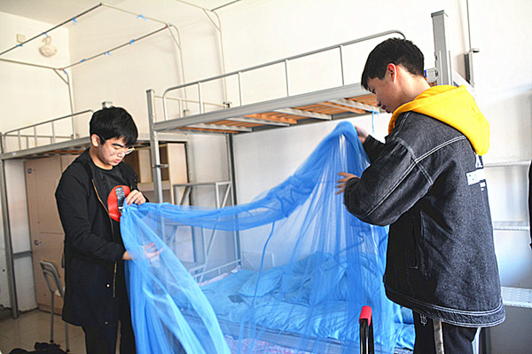 整理宿舍内务是来到学校的首要任务,学生们回“家”的感觉真好,一个个摆放好自己的行李便开始熟练的铺床叠被、打扫卫生,很快清爽整洁、窗明几净的房间就呈现在大家的面前了。