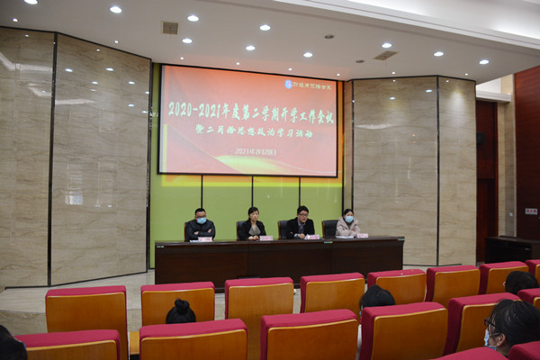 2月20日上午,全校开学工作会议标志着新学期正式开始,大家也从假期模式切换到工作模式。下午15:00,财贸系在謇公楼名匠报告厅举行了2020-2021年度第二学期开学工作会议暨二月份思想政治学习活动,茅一娟副校长参加会议并讲话,会议由王飞主任主持。