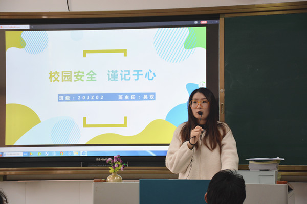 本次班会活动,让学生掌握必要的安全知识和自我保护技能,最大限度地预防安全事故的发生和减少安全事件对学生造成的伤害。牢固树立“校园安全,谨记于心”的意识,起到安全警醒的作用,达到安全教育的目的。(供稿:机电与汽车工程系 徐天天)