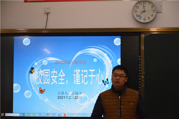 新的学期,新的起点,为了让学生能够迅速调整自我,提高安全意识,做好安全教育,整治安全隐患,2月22日上午第一课,建工系系组织开展了“校园安全,谨记于心”主题班会活动。
