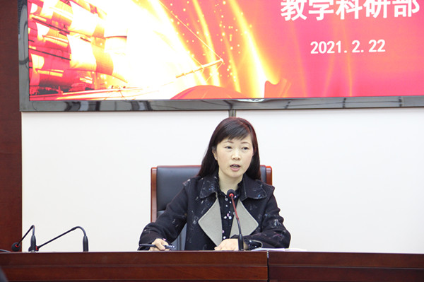 为进一步明确本学期教学工作目标与任务,2月23日下午,教学科研部在A楼二楼阿里厅召开2020-2021学年第二学期期初教学工作会议。我校本部六系主任、分管教学主任、教学科研部主任室成员及科长参加了会议,会议由教学科研部主任杨一丹主持,副校长茅一娟出席会议并发表讲话。